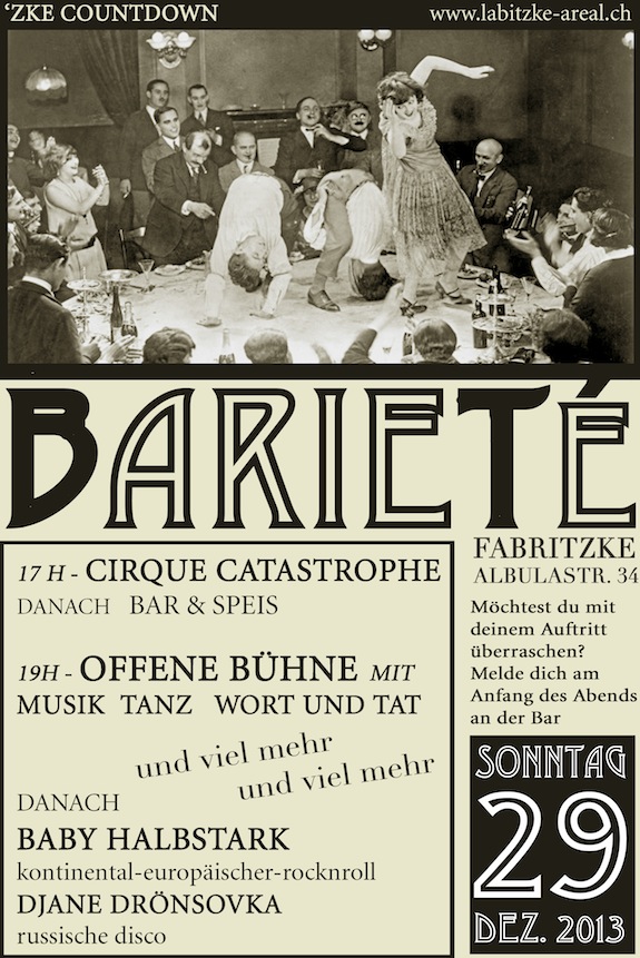 ab 19h GROSSES ZKE BARIÉTÉ chaosbühne mit vielen talenten, überraschungen und bühnenreifen diy-auftritten von leuten des labitzke-areals.