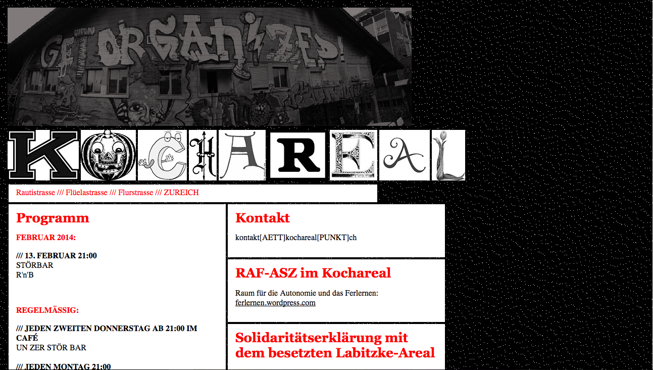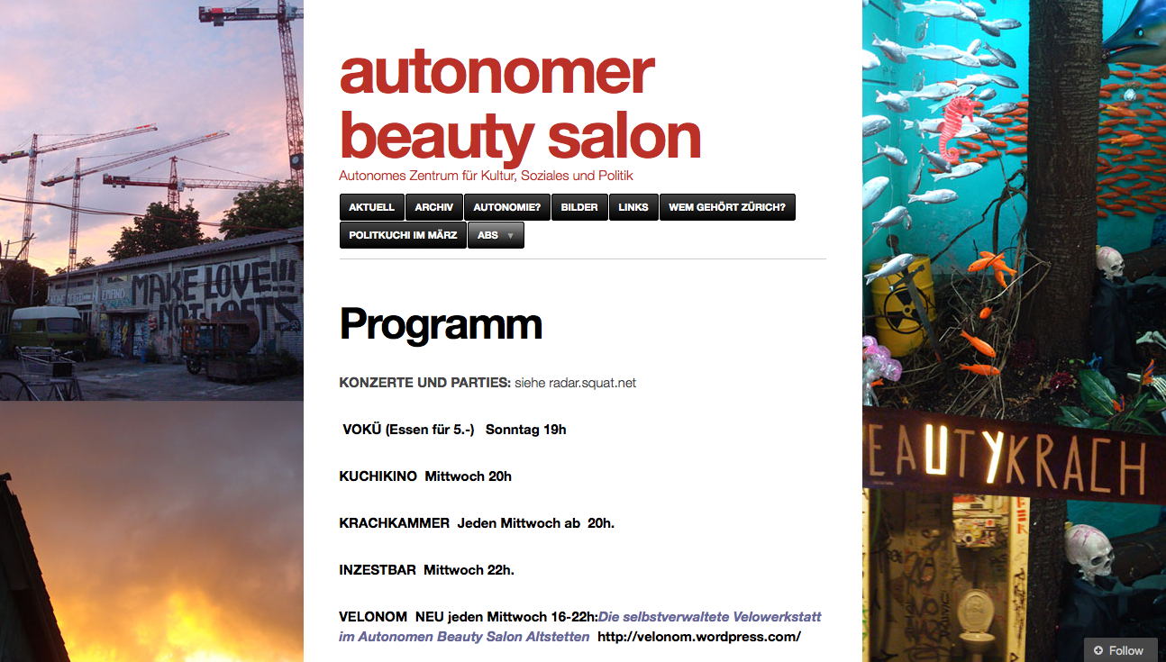 zke-reloaded (programm 2014) hier ist das aktuelle programm bei unseren Nachbarn: Labitzke Bleib Farbig (Chez Mei Mei, Cinemania, Tennishalle, Vokühalle…) Autonomer Beauty Salon Koch-Areal